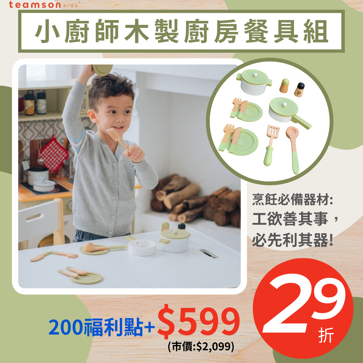 你就可以用超值的價格入手 #Teamson 木製質感玩具!